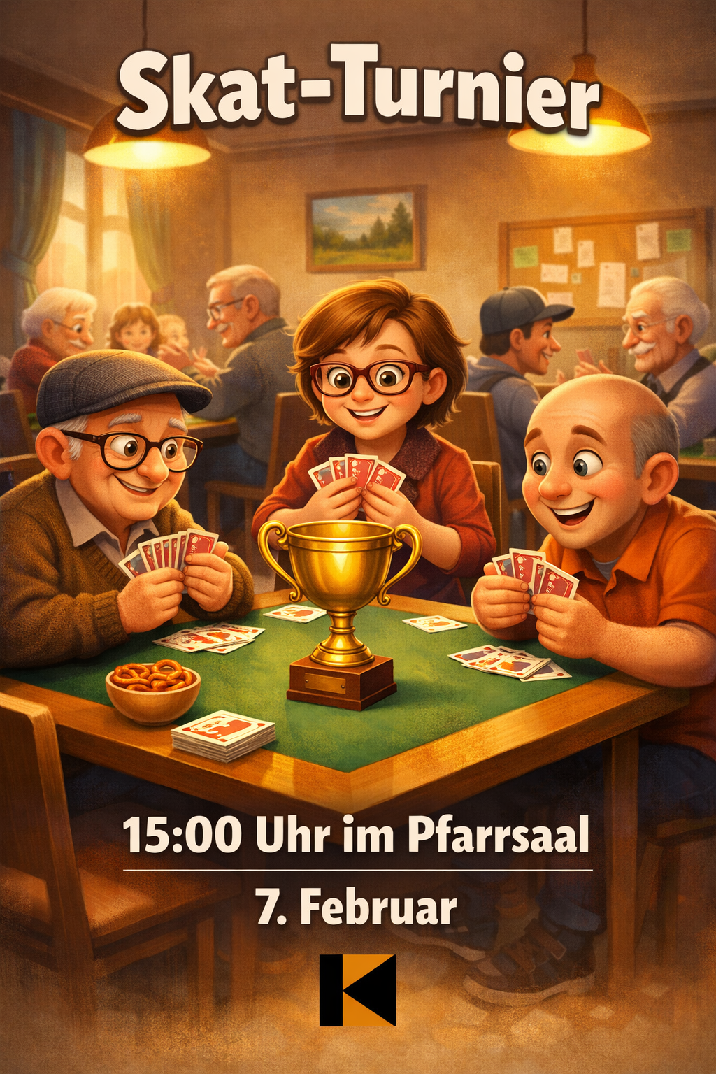 Skat-Turnier Termin Details Datum: 7. Februar 2026 15:00 – 18:00 Ort: Pfarrsaal, Hubertusstr. 13, 44577 Castrop-Rauxel Für alle interessierten Skat-Spieler. Anmeldung nicht erforderlich!